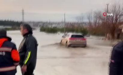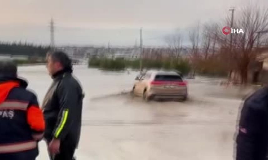 Adana'da meydana gelen şiddetli yağışlar, kenti olumsuz etkiledi. Birçok cadde ve sokak sular altında kalırken, TOGG isimli elektrikli araç, su birikintisinin içinde ilerledi.