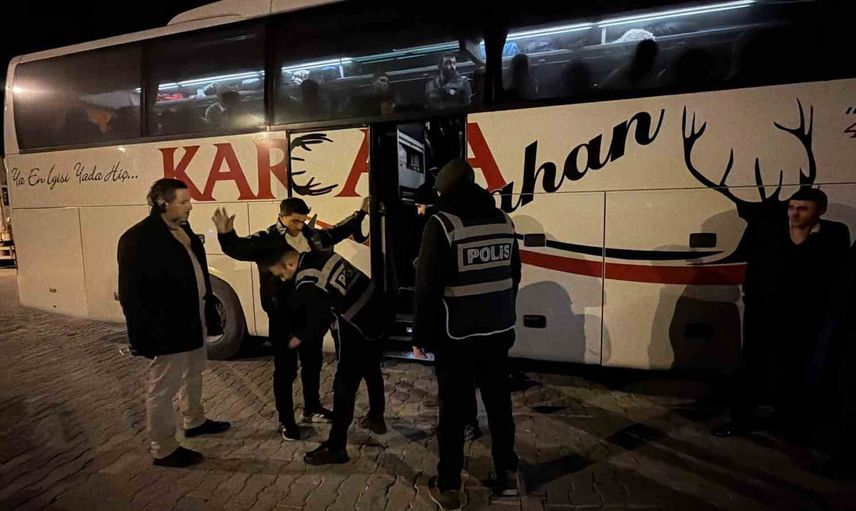 Polis ekipleri otobüste yaptıkları incelemelerde, 54 yolcu kapasiteli araca gizlice yerleştirilmiş durumda olan 5 Afgan vatandaşı kaçak göçmeni ortaya çıkardı.