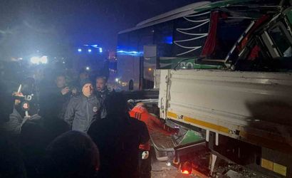 TOKAT’TA KARLI YOLDA KAYAN OTOBÜS, ARKADAN BİR TIRA ÇARPT. KAZADA ARAÇTA SIKIŞAN YOLCULARI KURTARMA ÇALIŞMALARI SÜRÜYOR.