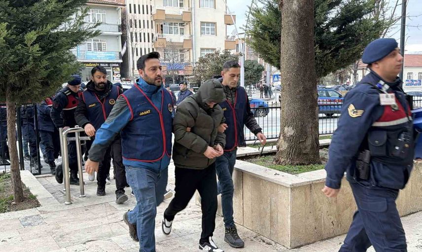 Jandarmadaki işlemlerinin ardından adliyeye sevk edilen şüphelilerden: