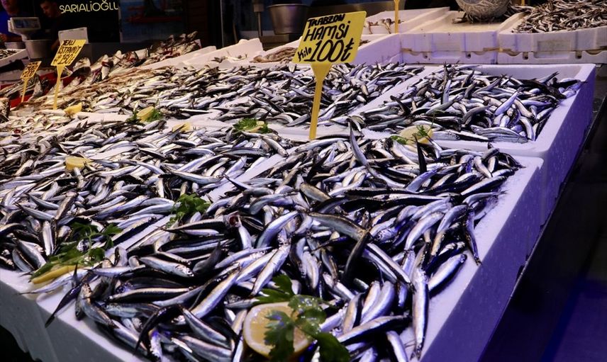 Trabzon'un Ortahisar ilçesindeki balıkçı tezgahlarında hamsinin kilogramı 100 liradan satışa sunuldu.