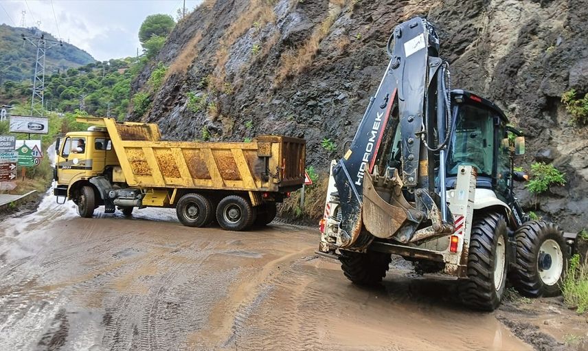 Trabzon'da etkili yağışın ardından bazı ilçelerde toprak kaymaları oluştu.