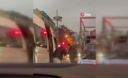 Tartışmanın kısa sürede alevlendiği ve kavgaya dönüştüğü belirtildi. Servis şoförü, kağıt toplayan kişiye yumrukla saldırdı. O anlar, olay yerinden geçen başka bir sürücü tarafından cep telefonuyla görüntülendi.