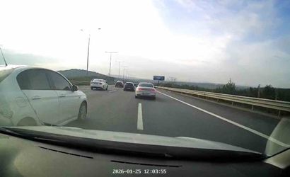 Beykoz'da Kuzey Marmara Otoyolu TEM bağlantı yolunda meydana gelen olayda, 34 FLC 606 plakalı bir otomobil sürücüsünün tehlikeli manevraları dikkat çekti.
