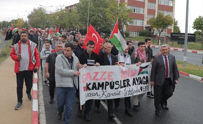 Trakya Üniversitesi, Özgürlük Filosu Koalisyonu'na destek vermek amacıyla "Gazze İçin Umut, İnsanlık İçin Onur Yürüyüşü" etkinliği gerçekleştirdi. Balkan Yerleşkesi’nde bulunan Bolcaana Yemekhanesi önünde bir araya gelen öğrenciler, "Gazze İçin Kampüsler Ayağa" yazılı pankart açtılar.