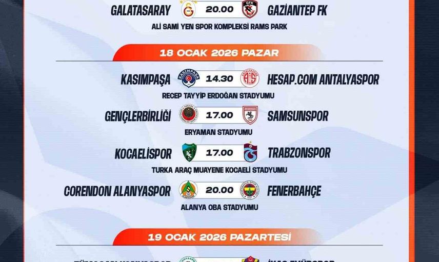 Trendyol Süper Lig 18-19. Hafta Maç Programı