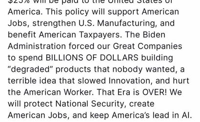 Trump, bu yeni politikanın Amerikan işlerini destekleyeceğini, ABD’de üretimi güçlendireceğini ve vergi mükelleflerine fayda sağlayacağını vurguladı. Ayrıca, Joe Biden yönetimini eleştirerek, büyük ABD şirketlerini düşük kaliteli ürünler üretmeye zorladığını iddia etti.