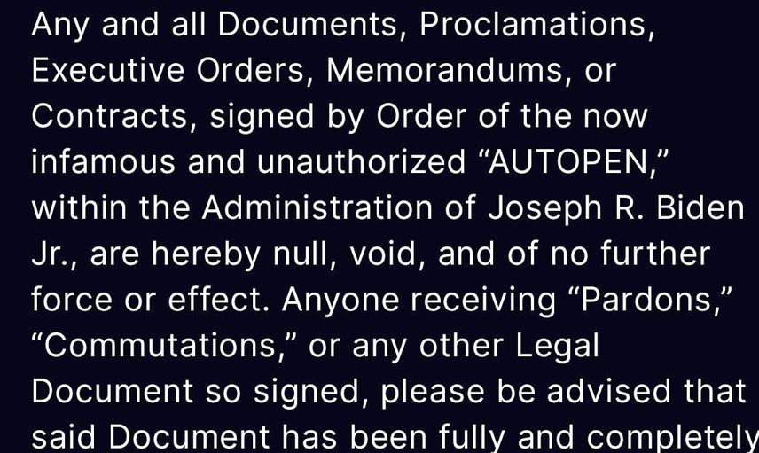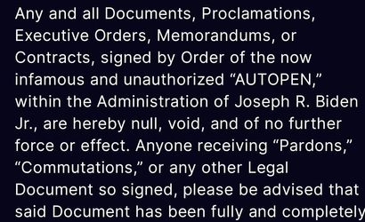 ABD Başkanı Donald Trump, selefi Joe Biden döneminde "Autopen" ile imzalanan belgelerin geçersiz olduğunu artık resmi bir şekilde duyurdu. Trump, bu belgelerin herhangi bir yasal etkisinin olmadığını vurguladı.