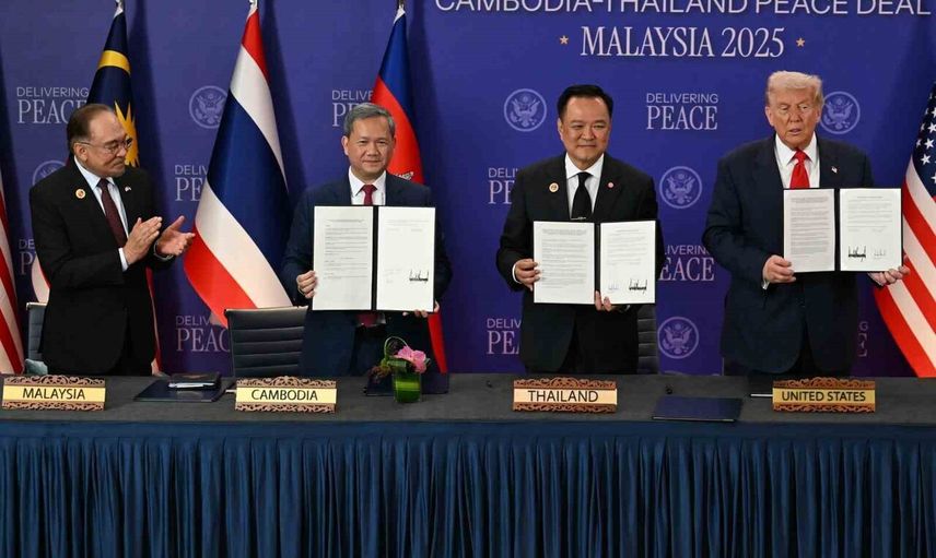 ABD BAŞKANI DONALD TRUMP, TAYLAND BAŞBAKANI ANUTİN CHARNVİRAKUL VE KAMBOÇYA BAŞBAKANI HUN MANET İLE TELEFON GÖRÜŞMESİ YAPTIĞI VE TARAFLARIN TÜM ÇATIŞMALARI DURDURMAYI KABUL ETTİĞİNİ DUYURDU.