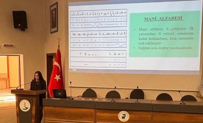Saygı duruşu ve İstiklal Marşı'nın okunmasıyla başlayan programın açılış konuşmasını Prof. Dr. Nergis Biray yaptı. Konuşmanın ardından, İnsan ve Toplum Bilimleri Fakültesi'nin Çağdaş Türk Lehçeleri ve Edebiyatları 3. sınıf öğrencisi Merve Aksakal, "Türklerin Kullandığı Alfabeler" konulu bir sunum gerçekleştirdi.