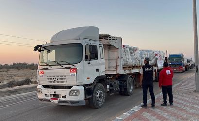 Afet ve Acil Durum Yönetimi Başkanlığı (AFAD) tarafından, Gazze'ye yönelik yardımlara ilişkin, 27 Temmuz 2025'ten bu yana 333 tır malzemenin Gazze'ye geçişinin sağlandığı belirtilerek, "13 Ekim 2025 tarihinde ülkemize ait 17 tır gıda, 3 tır battaniye yardımı ile ayrıca ülkemize ait çadırların geçiş yapması planlanmaktadır." bilgisi paylaşıldı.