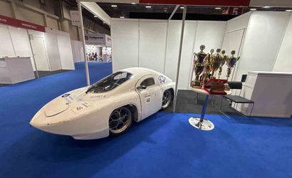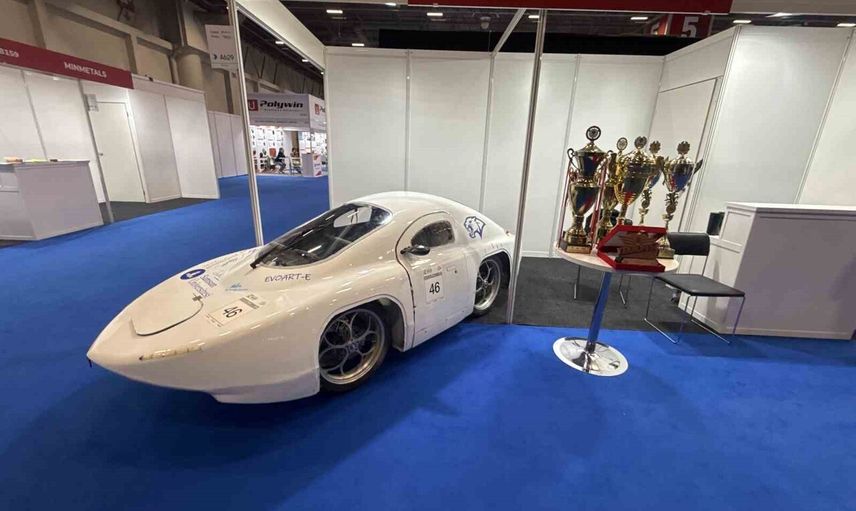 "2020’de kurulan topluluğumuz, Teknofest'te verimlilik yarışmalarına katılmakta. Bu, aerodinamik yapısı su damlasına benzeyen 5. aracımız. Geliştirdiğimiz hafif yapılı araç ile yarışmalarda toplam 6 şampiyonluk kazanmayı başardık. Bu fuarda aracımızı tanıtmak büyük bir gurur."