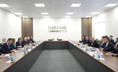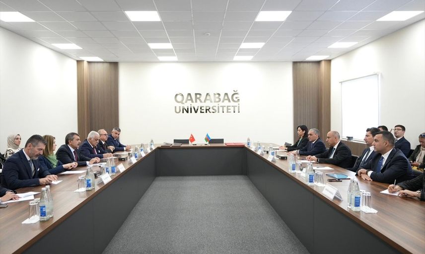 Azerbaycan'da temaslarda bulunan Milli Eğitim Bakanı Yusuf Tekin (solda), Hankendi şehrini ziyaret ederek buradaki Karabağ Üniversitesi'nde Azerbaycan Bilim ve Eğitim Bakanı Emin Amrullayev'le (sağda) bir araya geldi. Görüşmenin ardından Tekin ve Amrullayev, Türkiye ile Azerbaycan arasında mesleki ve teknik eğitimde iş birliğini öngören protokole imza attı.