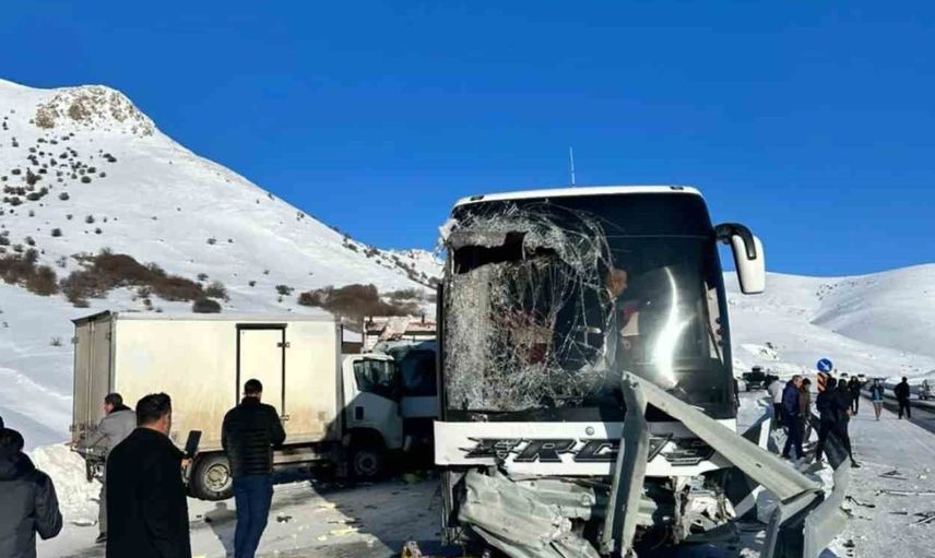 Edinilen bilgilere göre, sabah saatlerinde seyir halindeki yolcu otobüsü, et taşıyan kamyonetin olumsuz hava koşullarından dolayı kayganlaşan yolda direksiyon hakimiyetini kaybetmesi sonucunda kaza meydana geldi.
