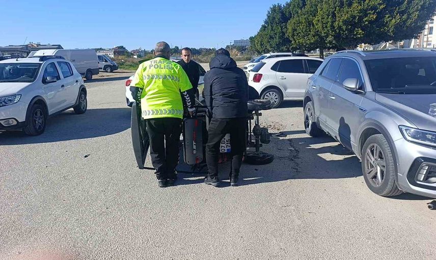Antalya'nın Manavgat ilçesinde, sokak kesişiminde meydana gelen kazada üç tekerlekli motorlu bisiklet bir otomobil ile çarpıştı. Çarpışmanın ardından bisiklet, park halindeki bir diğer otomobile de çarptı.