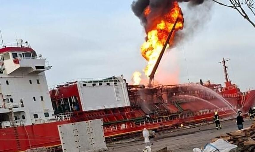 DENİZCİLİK GENEL MÜDÜRLÜĞÜ, "ORINDA ADLI LPG GEMİSİ UKRAYNA İZMAİL LİMANINDA TAHLİYE SIRASINDA İSABET ALMIŞ VE YANGIN ÇIKMIŞTIR. MÜRETTEBAT GEMİYİ EMNİYETLE TERK ETMİŞTİR" İFADELERİNİ KULLANDI.