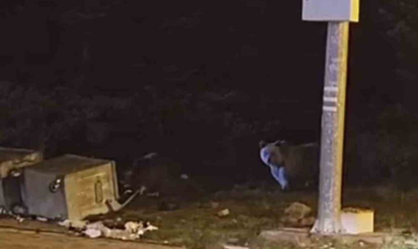 Bu anlar, çevredeki vatandaşlar tarafından cep telefonlarıyla kaydedildi. Görüntülerdeki ayılar, çöpler arasında uzun süre yiyecek aradıktan sonra ormanlık alana doğru uzaklaştı.