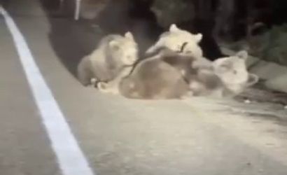 Doğa gezisi için Uludağ'a çıkan bazı vatandaşlar, yol kenarında hareketsiz duran bir ayı fark etti. Başlarda yaralı olabileceği düşünülerek yaklaşıldı. Ancak ayının yanında 3 yavrusu olduğu görülünce, bu özel anı kaydetmek için cep telefonlarına yöneldiler.