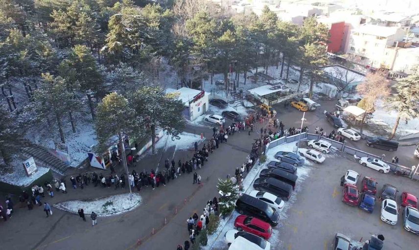 Sabahın ilk ışıkları ile teleferik tesislerine akın eden vatandaşların oluşturduğu uzun kuyruklar, havadan çekilen dron görüntüleriyle belgelendi. Çoğu kişinin bu soğuk havaya rağmen zirveye ulaşma arzusu, güzel bir hafta sonu geçirme isteğini ortaya koydu.