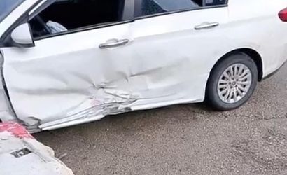 Şehir merkezine doğru ilerleyen bir otomobil, viraja hızlı girmesi sebebiyle sürücüsünün kontrolünü kaybetmesi sonucu bariyerlere çarptı. O anlar bir işyerinin güvenlik kamerasına yansıdı.