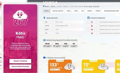 Çevre, Şehircilik ve İklim Değişikliği Bakanlığı Sürekli İzleme Merkezi (SİM) verilerine göre, Ünye uzun süredir hava kalitesinin en düşük olduğu bölgeler arasında yer alıyor. Genellikle doğası, yaylaları ve temiz havasıyla bilinen Ordu’da, Ünye’deki ölçümlerin bu kadar yüksek çıkması dikkat çekici.