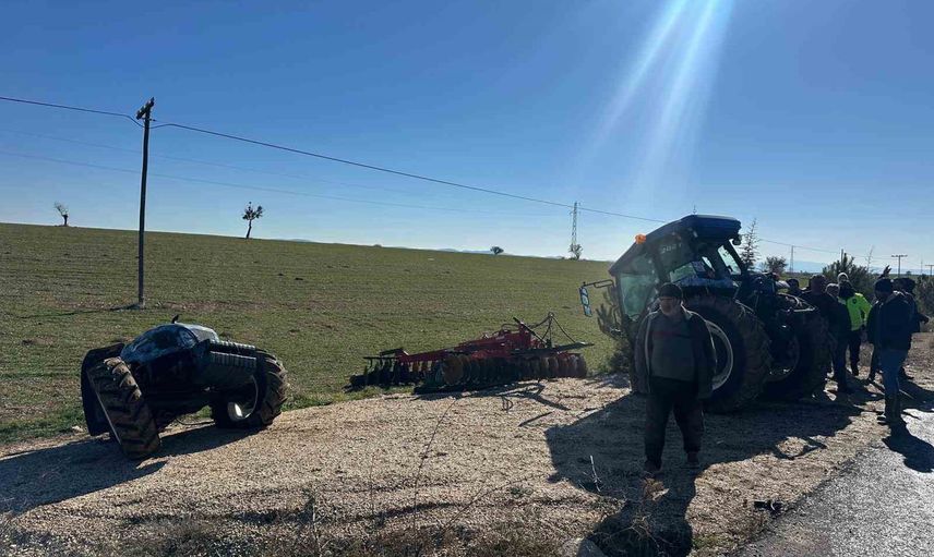 Uşak'ta bir traktör ile kamyonetin çarpışması sonucu meydana gelen kazada, traktör ikiye bölünerek hurdaya döndü. Olayda traktör sürücüsü yaralanarak hastaneye kaldırıldı.