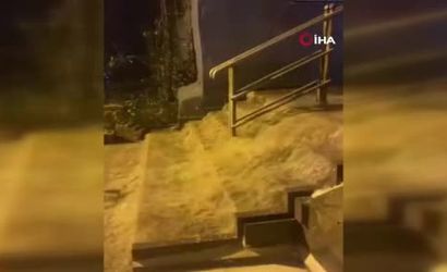 Sağanak yağış nedeniyle birçok yerde yollar, su birikintileri ile doldu. Beylerbeyi’nde yaşanan anlar ise bir dükkanın güvenlik kamerasına yansıdı.
