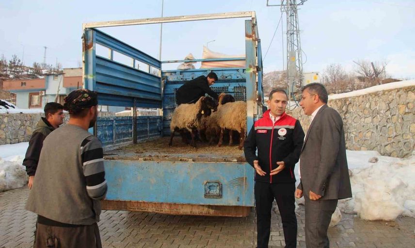 ŞIRNAK MERKEZ YEŞİLYURT MAHALLESİ’NDE BİR AĞILA GİREN VAHŞİ HAYVANLAR, HASAN ERTAK’A AİT KÜÇÜKBAŞ HAYVANLARA BÜYÜK ZARAR VERDİ. ŞIRNAK VALİSİ BİROL EKİCİ’NİN TALİMATI İLE MAĞDUR VATANDAŞA 10 KOYUN HİBE EDİLDİ.