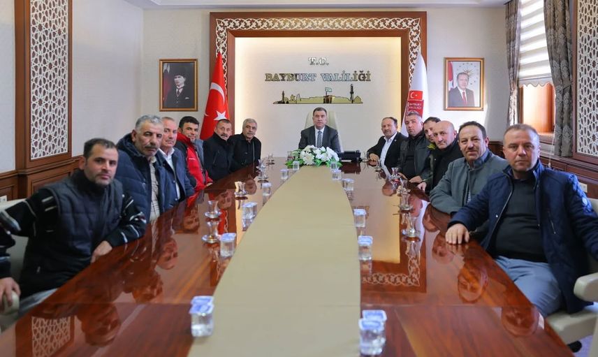 Bayburt Muhtarlar Derneği Başkanı Huzeyfe Budak ve beraberindeki muhtarlar, köylerin öncelikli ihtiyaçlarını Vali Mustafa Eldivan’a iletmek üzere bir araya geldi.