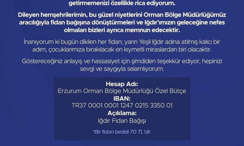 Fidan bağışında bulunmak isteyenler için gerekli bilgiler ise şu şekildedir:
