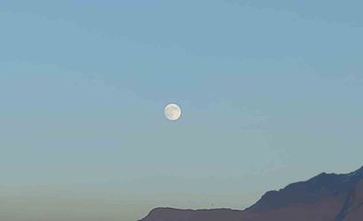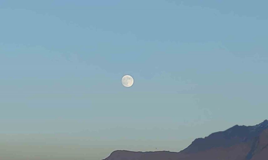 Van’da akşam saatlerinde, güneş batarken doğu ufkunda ayın yükselmesi gökyüzünde etkileyici bir manzara oluşturdu. Gün batımıyla birlikte ayın parlak yüzü aynı anda gökyüzünü süsledi.