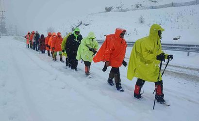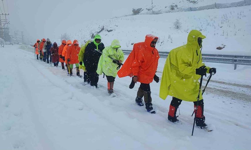 Van genelinde etkisini sürdüren yoğun kar yağışı, ulaşımı zora sokmaya devam ediyor. Bir grup doğasever, hava koşullarının olumsuz etkisiyle planladıkları güzergahları kapalı bulunca alternatif olarak Toprakkale bölgesine yöneldi.