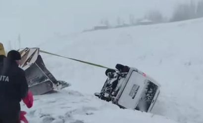 VAN’IN BAŞKALE İLÇESİNDE YOLUNDA KONTROLDEN ÇIKAN MİNİBÜS, KONTROLDEN ÇIKARAK YOL KENARINDAKİ KAR BİRİKİNTİSİNE SAPLANDI.