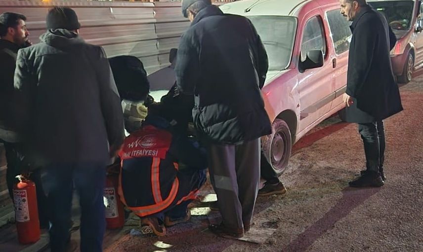 Van'ın Edremit ilçesinde park halinde bulunan bir kapalı kasa kamyonette, motor kısmında yangın meydana geldi.