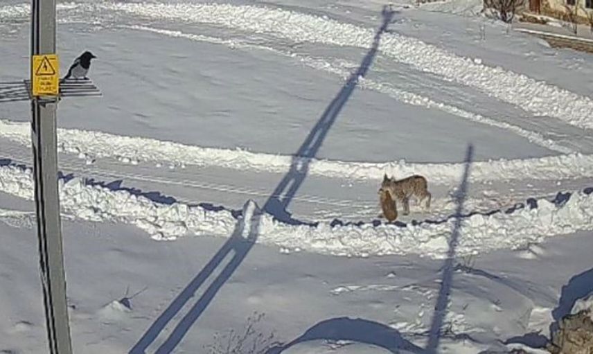 Sivas'ta bulunan Kılıçköy'de yaşanan olayda, bir gün önce yaban tavşanını avlayan vaşak, ertesi gün kurtların hedefi haline geldi. Bu ilginç anlar, köydeki bir güvenlik kamerası tarafından kaydedildi.