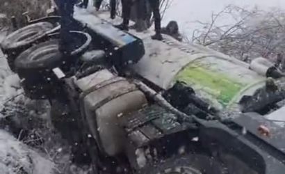 BİTLİS MERKEZE BAĞLI YOLALAN BELDESİ BELEDİYESİ’NE AİT VİDANJÖR KAMYON, GÖREV ESNASINDA ŞARAMPOLE YUVARLANDI.
