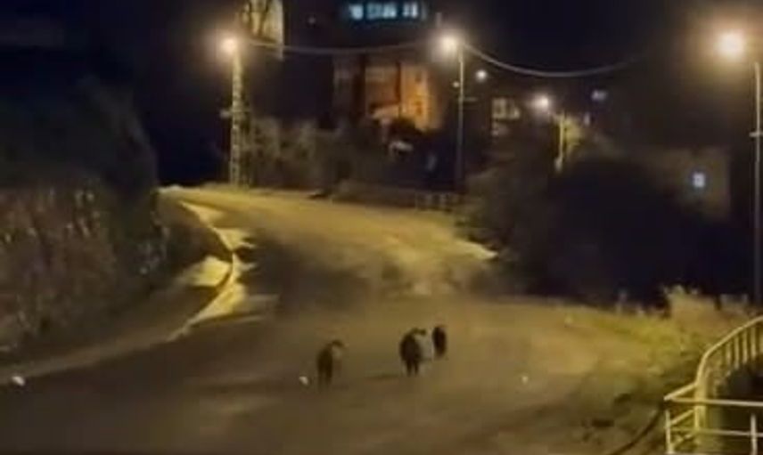 Zonguldak'ın Ereğli ilçesinde, Bağlık Mahallesi 1 Nolu Sakindere Sokak'ta akşam saatlerinde 3 yetişkin yaban domuzu caddelere inerek yiyecek aramaya başladı.