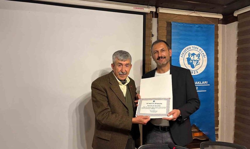 Etkinlik sonrası konuklardan gelen soruların akabinde, Eskişehir Türk Ocağı Başkanı Prof. Dr. Nedim Ünal, Doç. Dr. Özer Çelik’e bir teşekkür belgesi takdim ederek programı sonlandırdı.