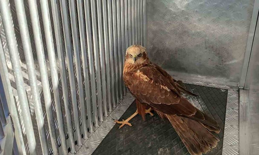 Karaman’ın Hamidiye köyü kırsalında yaralı ve bitkin halde bulunan bir kızıl şahin koruma altına alındı.