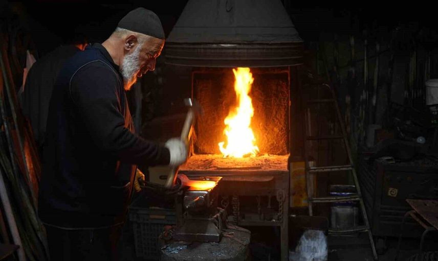 MUŞ’TA YARIM ASIRDIR DEMİR DÖVEN 63 YAŞINDAKİ HALİT PINAR, KENTTE MESLEĞİNİ SÜRDÜREN TEK DEMİRCİ OLARAK GELENEKSEL USTALIĞINI YAŞATMAYI SÜRDÜRÜYOR.