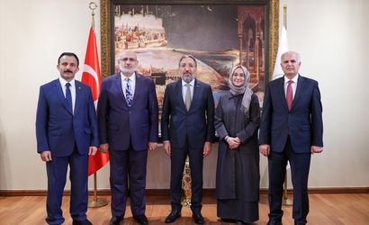 Cumhurbaşkanı Kararı ile Diyanet İşleri Başkan Yardımcılığına atanan Prof. Dr. Ahmet İshak Demir (solda), Dr. Hatice Boynukalın Şenkardeşler (sağ 2), Dr. Hafiz Osman Şahin (sol 2) ve Dr. Hüseyin Hazırlar (sağda) görevine başladı. Görevini tamamlayan isimlere teşekkür eden Diyanet İşleri Başkanı Prof. Dr. Safi Arpaguş (ortada) yeni başkan yardımcılarına başarılar diledi.