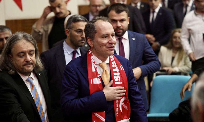 Yeniden Refah Partisi Genel Başkanı Fatih Erbakan (ortada), partisinin İzmir il kongresine katıldı.