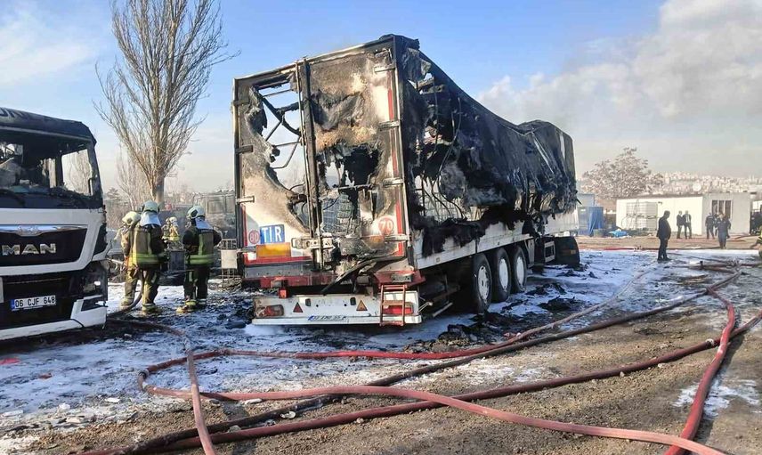 Olay, Ankara İl Emniyet Müdürlüğü'ne ait yediemin otoparkında meydana geldi. Edinilen bilgiye göre, park halindeki 6 alkol yüklü tır, henüz belirlenemeyen bir sebeple alev aldı. İtfaiye ekiplerinin hızlı müdahalesiyle yangın kontrol altına alınarak söndürüldü. Ancak, yangının çıkış nedeni henüz belirlenmediği için araştırmalar devam ediyor.