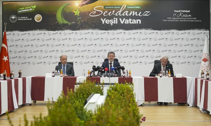 Tarım ve Orman Bakanı İbrahim Yumaklı (sağda), "Yeşil Vatan Seferberliği"ne ilişkin düzenlenen basın toplantısına katıldı.