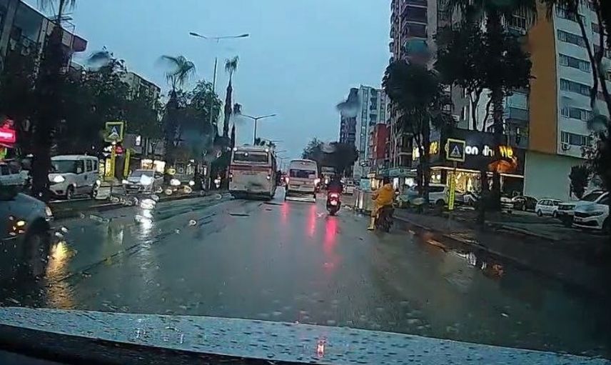 Adana’nın Yüreğir ilçesinde, bir otobüs sürücüsünün minibüs sürücüsünü sıkıştırarak kazaya neden olduğu anlar, kameralara yansıdı. Olay, PTT Evleri Mahallesi Kozan Caddesi’nde yaşandı. İki sürücü arasındaki yol verme meselesinin ardından özel halk otobüsü sürücüsü, minibüsü takip etmeye başladı ve sonuç olarak arkadan çarparak maddi hasarlı bir kazaya yol açtı.