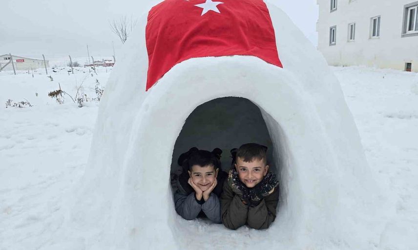 Yozgat’ta yaşayan Ersoy ailesi, etkili kar yağışından dolayı kışın tadını çıkarmak için yaratıcı bir yöntem buldu. Geleneksel kardan adam yapmanın ötesine geçerek, karlı alanda bir eskimo evi inşa etme kararı aldılar.