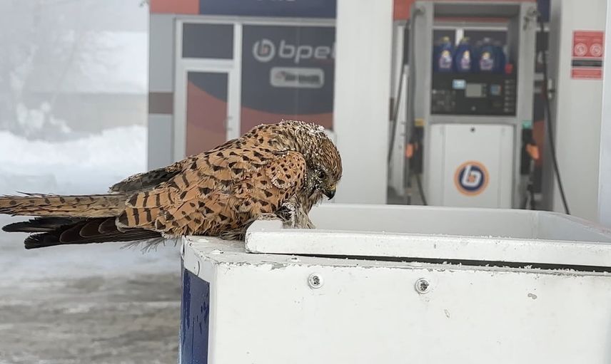 Sabah saatlerinde yakıt almak için istasyona gelen Abdullah Özer, beklenmedik bir manzarayla karşı karşıya kaldı. Yakıt pompasının üzerinde hareketsiz duran bir kuş gördü. İlk başta kuşun yaşadığını düşünen Özer, yaklaştığında kuşun tamamen donmuş olduğunu fark etti.