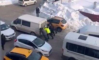 Cengiz Topel Caddesi’ndeki Soryan İş Merkezi yakınında meydana gelen olayda, kamyonetin tekerlekleri buzdan kayarak ilerleyemedi. Durumu gören bir trafik polisi, hemen araca yönelerek yardım etmeye karar verdi.