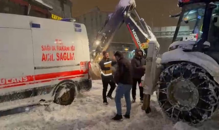 Ambulansın içinde bulunan sağlık ekipleri, kendi çabalarıyla kurtulamayıp durumu acil olarak yetkililere iletti. Hemen ardından, İl Özel İdaresi'ne bağlı karla mücadele ekipleri olaya müdahale etmek için bölgeye yönlendirildi. İş makinesi yardımıyla gerçekleştirilen çalışma sonucunda, ambulans sıkıştığı yerden çıkarıldı.