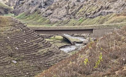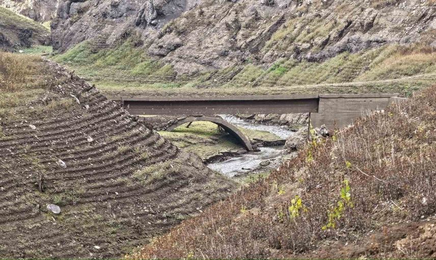 KOCAELİ'NİN İÇME SUYU İHTİYACININ ÖNEMLİ BİR BÖLÜMÜNÜ KARŞILAYAN YUVACIK BARAJI'NDA DOLULUK ORANI YÜZDE 11'E KADAR GERİLERKEN, BARAJ HAVZASINDAKİ ESKİ KÖPRÜ YENİDEN GÖRÜNÜR HALE GELDİ.